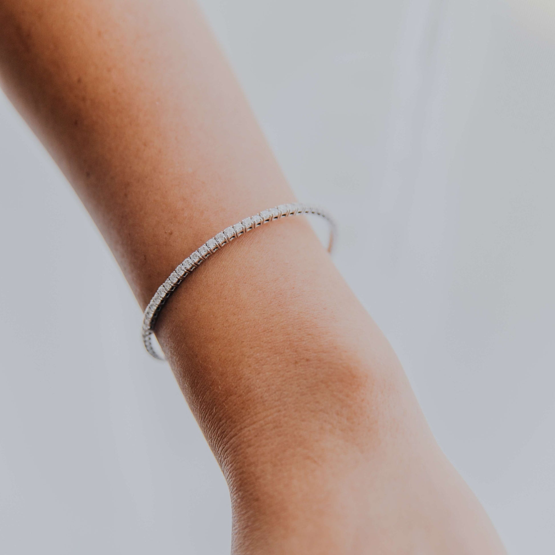 Crafted in 14k white gold, this flexible bangle bracelet features lab-grown diamonds that deliver authentic sparkle with exceptional value. The innovative flexible design adapts to your wrist for a comfortable, secure fit that moves with you throughout the day.
