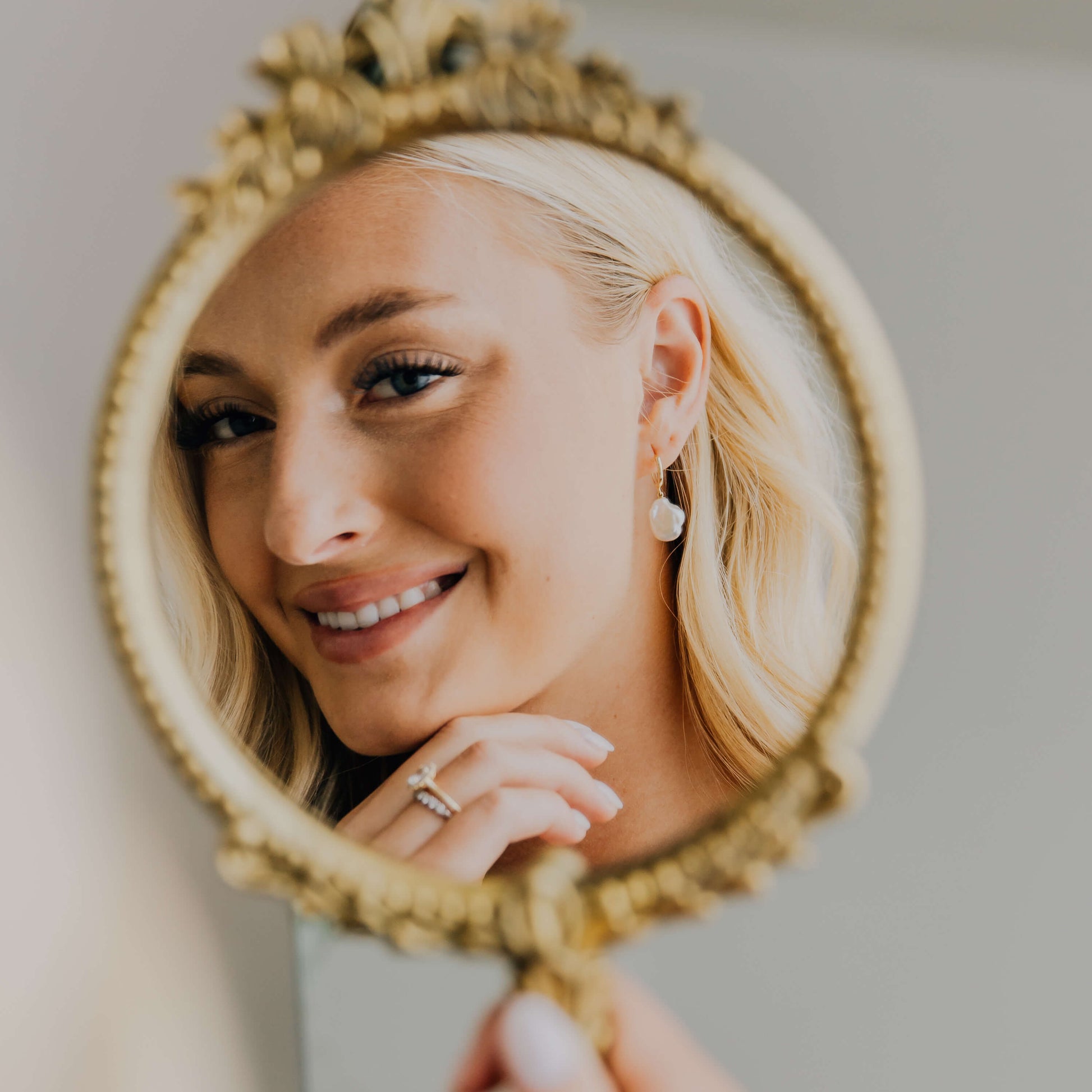 Solid 14K gold with organically shaped fresh water pearls. These dangling earrings are a fun new twist on the classic pearl earring. Perfect to class up any casual outfit, to wear at the office, or out with friends!